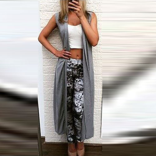 lends an easy and relaxed vibe to any look. Sleeveless and loose silhouette make this