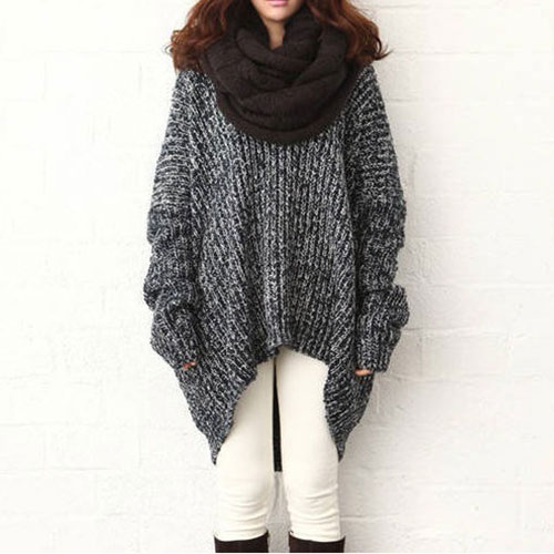 This oversize sweater is made of high quality material. It high-low hemline design looks very chic and stylish. With the pure color design, it looks leisure and simple. You can pair it with a tight pant or a blue jean and a pair of high-top canvas shoes. This ensemble is suitable for daily occasion.