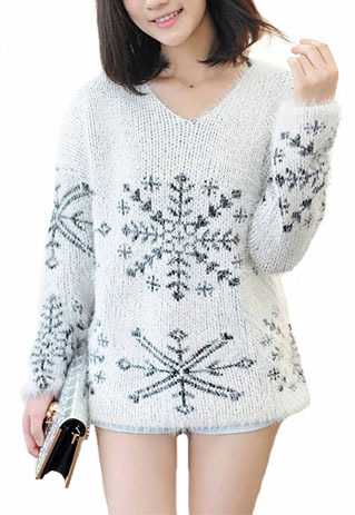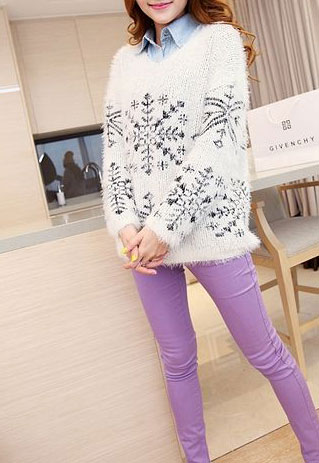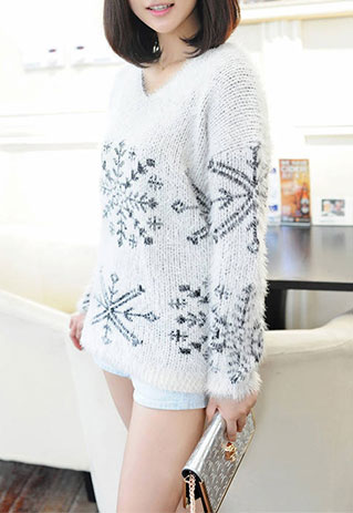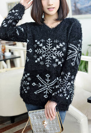 This long sleeve sweater is made of high quality mohair. Tough it, you can feel its soft texture. In it, you will feel warm and comfy. Its snowflake pattern is very simple but stylish which forms the mixing color with the sweater. Have one and enjoy your warm winter.
