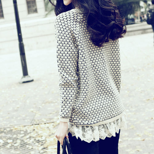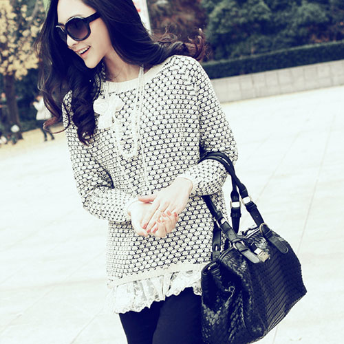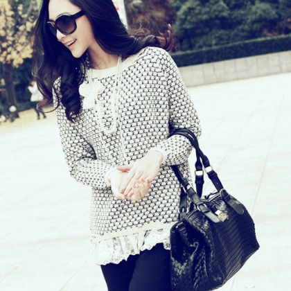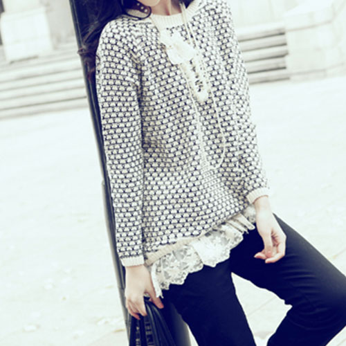High quality. Soft texture. Leisure design, Lace spliced is the heat of this sweater. That makes you elegant and charming. Chic and cute diamond check pattern make it stylish. Easy match. Just need a black pants and a pair of leisure ankle booties, you can stand out of the crowd easily.