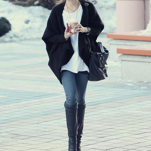 Hurry out and have no time to dress up yourself? You could wear this leisure cardigan. It will complement your ordinary ensemble. Features the oversize design and the batwing sleeve design, this cardigan looks leisure and chic. Also, it will make you looks slimmer. Its pure color looks leisure and simple. In it, how could you have a bad mood?
