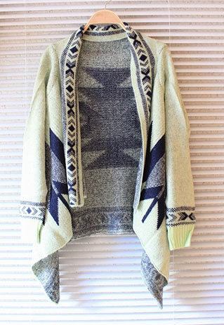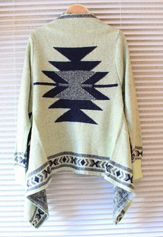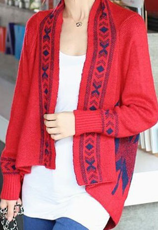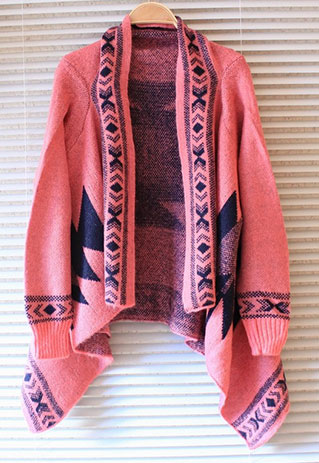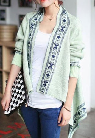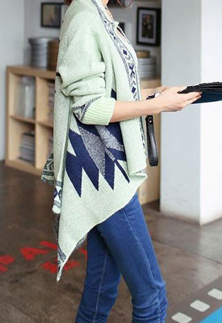 This Pop style cardigan features the geometric figure print that make it looks chic and stylish. Fashion gals, you could not miss it. Beside its print, its irregular hemline design can make you cooler and more fashionable.