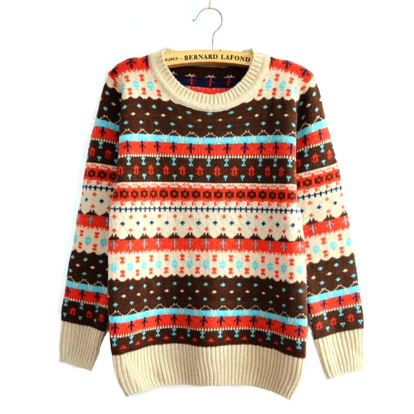 Cool weather is fashion gals favorite. It means time for your favorite fashion statements, and you'll love every chilly day when you're wearing this charming stripe print sweater. It is characterized by the floral stripe print which is very cute and sweet. This sweater is made of high quality cotton. In it, you will feel comfy and warm. Also, you will feel very happy for its unique design and the high quality.