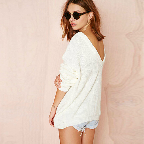 Never imagined that you could be so sexy and stylish even wearing a simple sweater. Yes,this sweater can give you this style. Features pure color and puff sleeve design,oblique shoulder and backside deep V backless style,sexy and charming. Just pair it with shorts or jeans,you can become a sexy goddess.