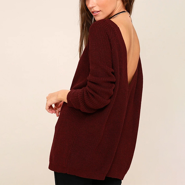 Sexy V-shaped Backless Long Sleeve Round Neck Sweater