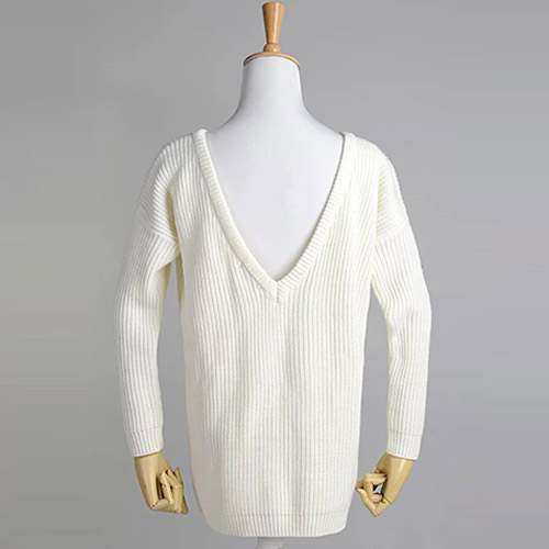 This sweater features solid color style,with long sleeve and round neck design. The best part? Its v-shaped backless design adds some sexy and sultry elements. You can pair it with your shorts,skirts or jeans. Of course,of adding a sweater necklace would be more eye-catching.
