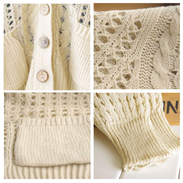 Follow the fashion trend, this cardigan has a simple style. V neckline. Button placket. Ribbed trim. Two patch pockets. Features the floral crochet and open knit design, looks fresh can chic. Pair with a vest and a jean can make you look slim and prove that you are tasteful. It suitable for daily informal activities.