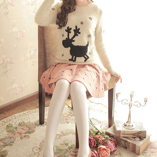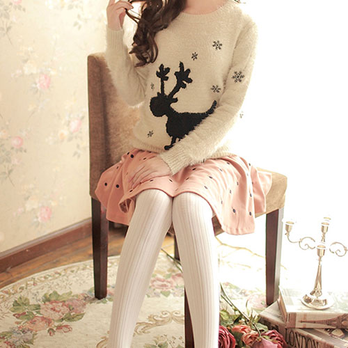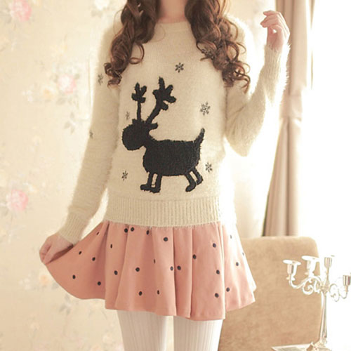 Christmas is coming. What kind of suit would you like to show in that day? How about this sweet sweater? It is characterized by the snowflake and deer pattern which is embroidered. Pair with a polka-dot print skirt; you will look more leisure and sweet.