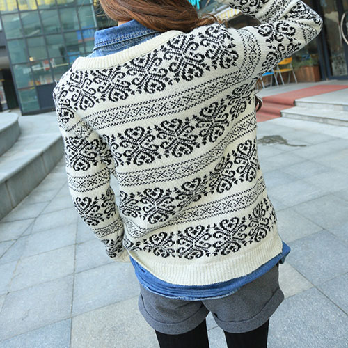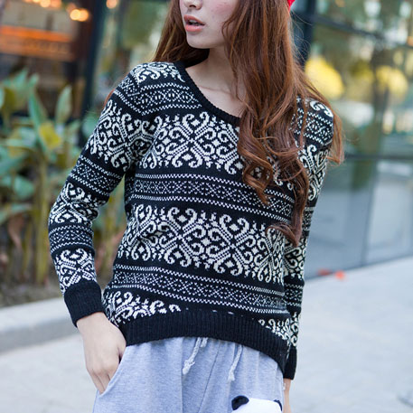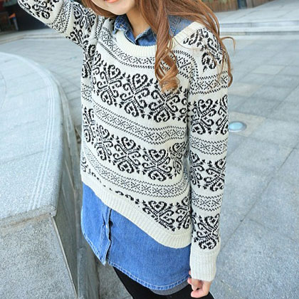 How about wear this oversize sweater to meet your sweetheart after the raining. It is characterized by the retro floral pattern, looks fresh and sweet. Walk down the road, enjoying the fresh air, you and your lover are the happiest two in the road.