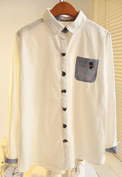The button-down shirt features long sleeves,button closure cuffs,both chest pocket and front buttons set with embroidery cats.Pair the cute shirt with shorts or stuff it into skinny jeans.