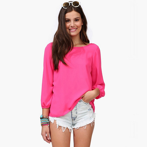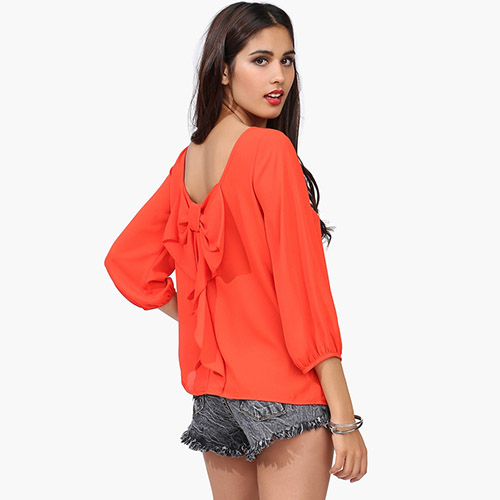 Elegant and sweet. Solid color style,with backless,round neck and 3/4 sleeve design,sexy and fashion.