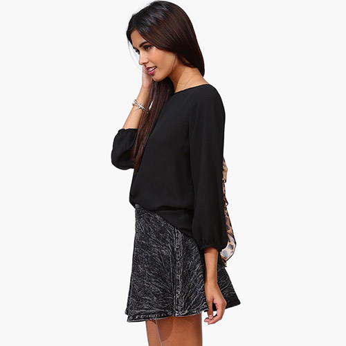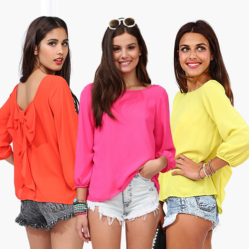 Backside bowknot design adds its sweet sense. Loose style,with soft and skin-friendly chiffon fabric,gives