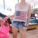 Fashion American Flag Floral Print Dew Navel Tank Tops