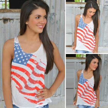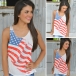 Fashion American Flag Print Round Neck Loose Tank Tops