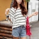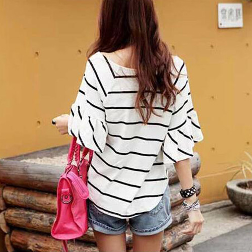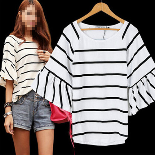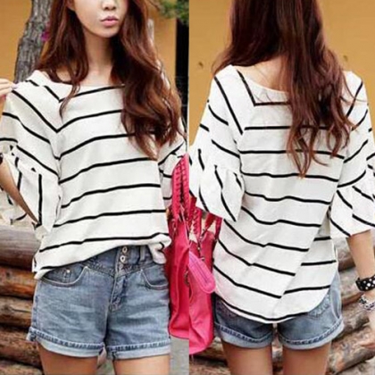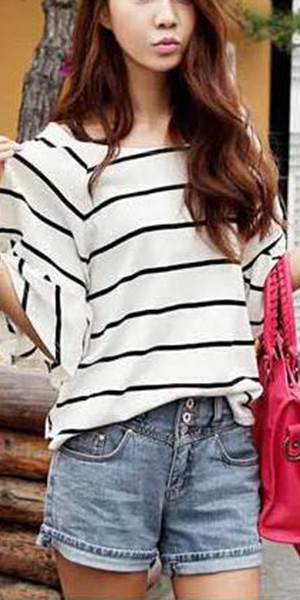 Striped style,with chic bat sleeve and round neck design. Easy to match.