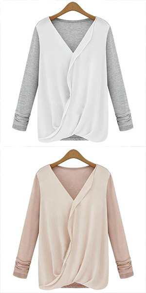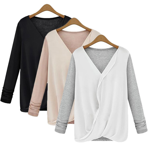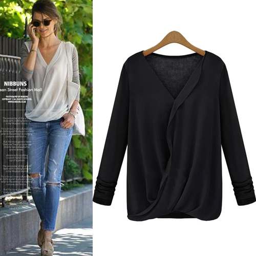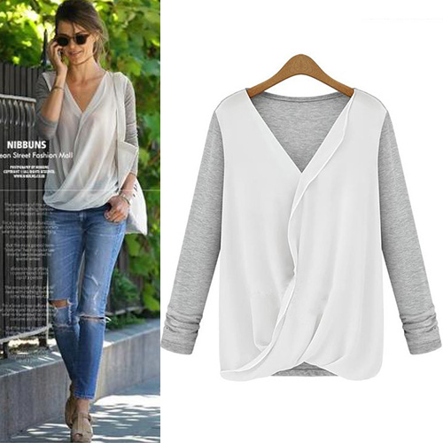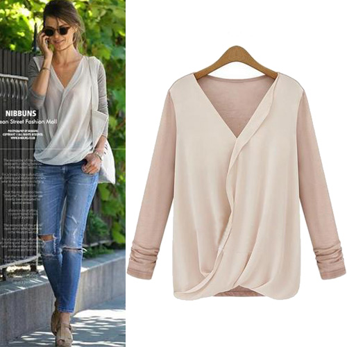 Kick those boring basics to the curb and slip into this long sleeve top instead. It features chiffon spliced