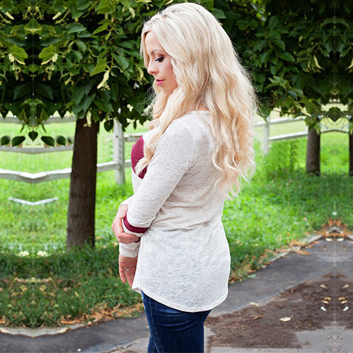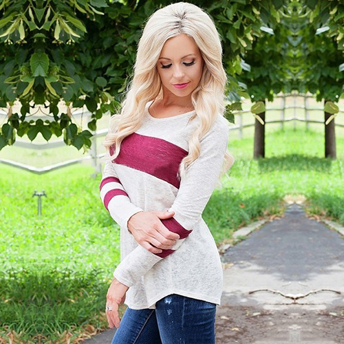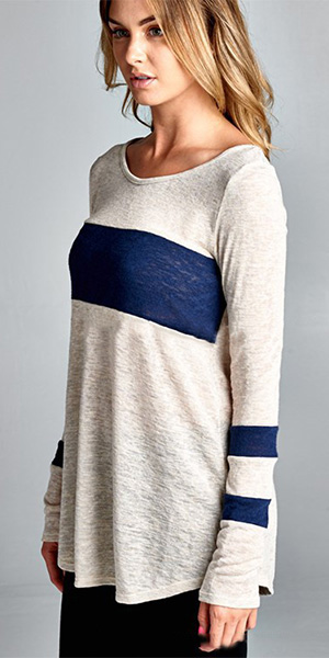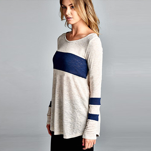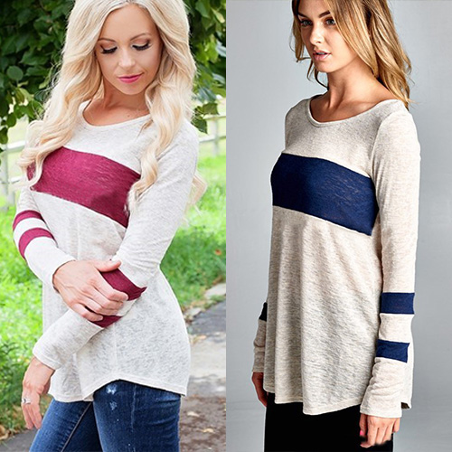 Contrast color style,with long sleeve,round neck and arcuate hem design. Casual,comfy and