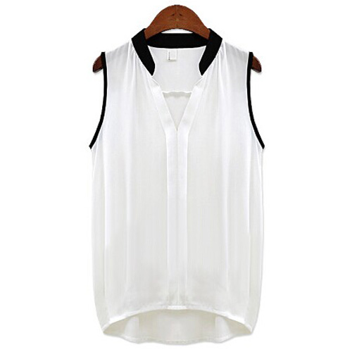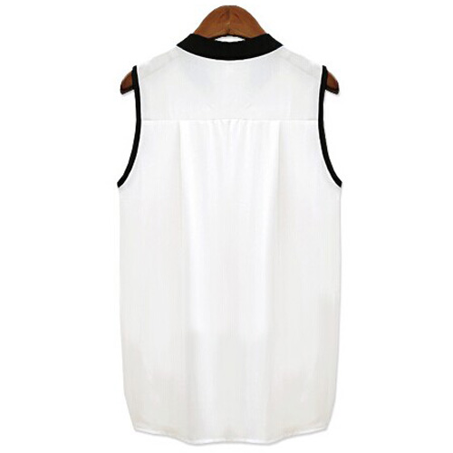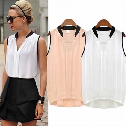 Stay stylish and comfy all day in this sleeveless chiffon tops. Contrast color style,