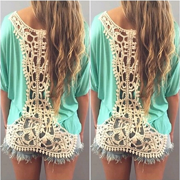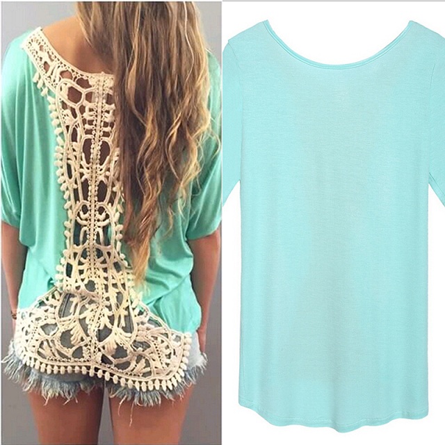 Hollow out lace spliced design makes this t-shirt more sexy and sultry. Try to pair