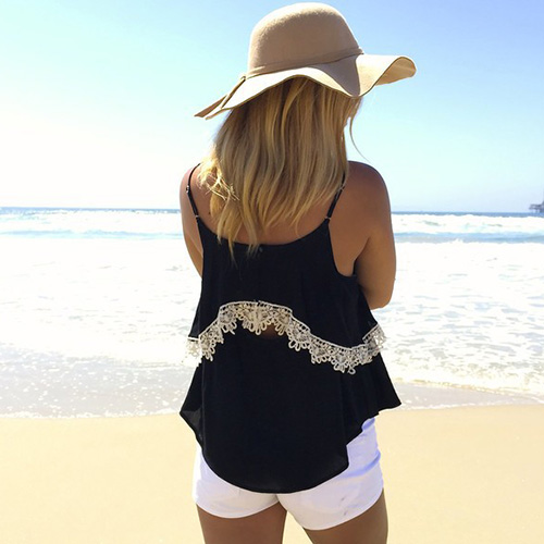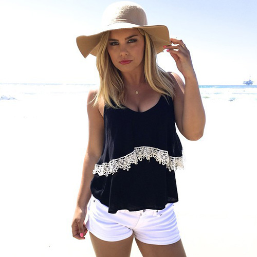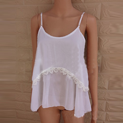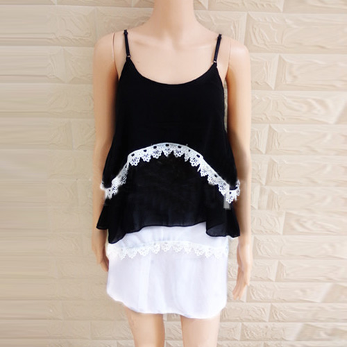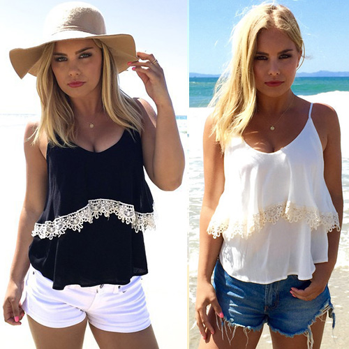 This cami top is ultra-sweet and perfectly girly. Double-layer chiffon design,with lace spliced design makes it so feminine.
