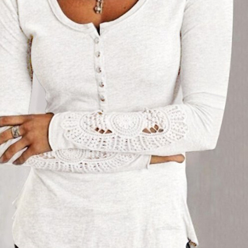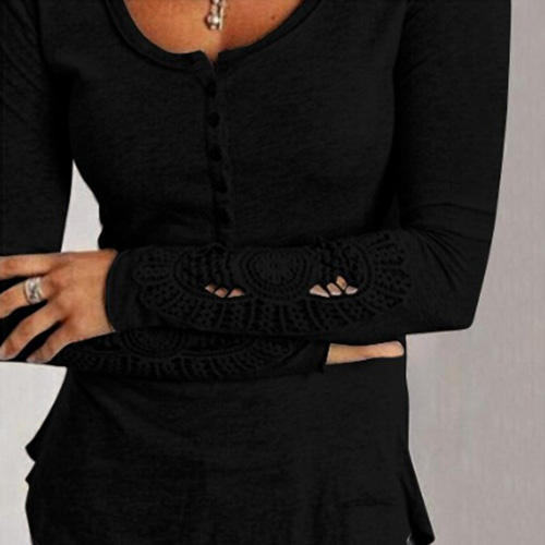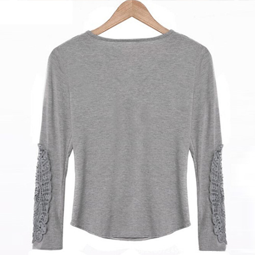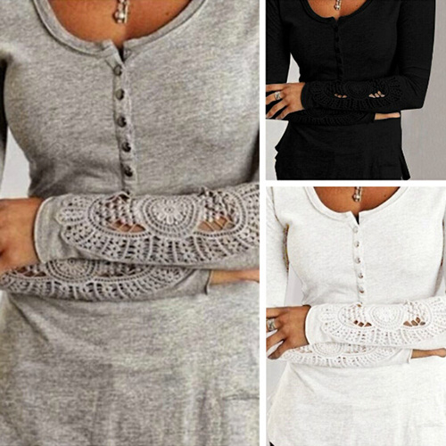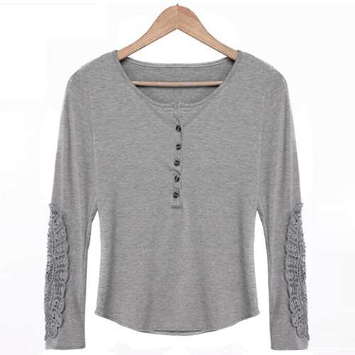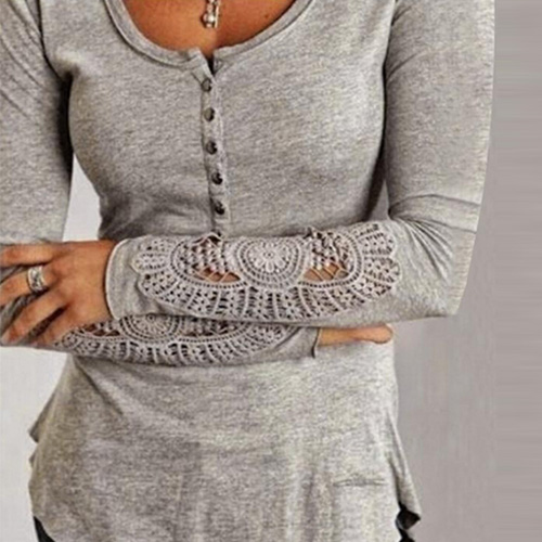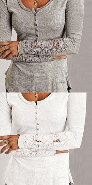 with long sleeve and round neck design. And its lace spliced design makes it more feminine. A wardrobe essential!