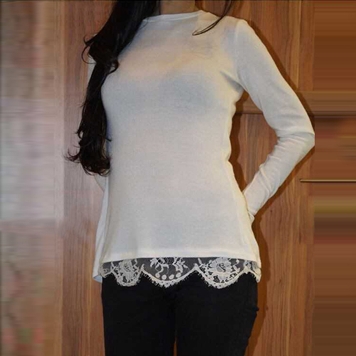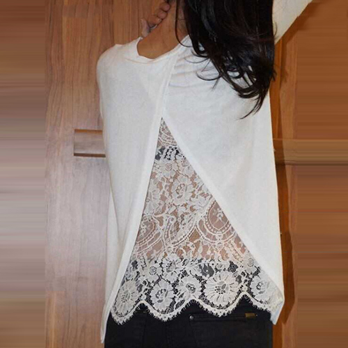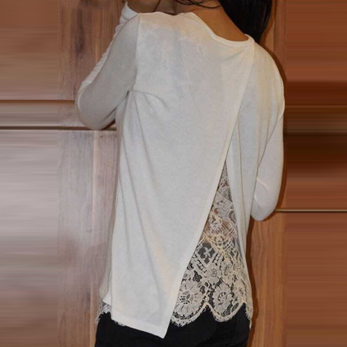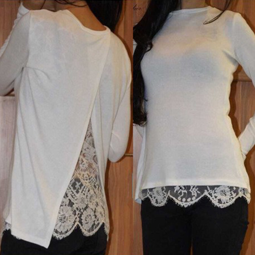 Fashion Lace Spliced Long Sleeve Round Neck T-shirt