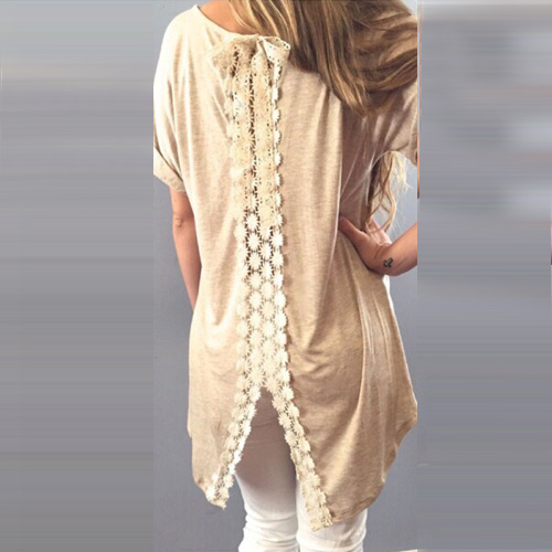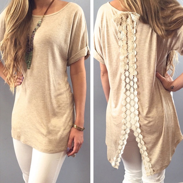 this short sleeve t-shirt is a real time solution for all. Its lace spliced design at back gives you a more