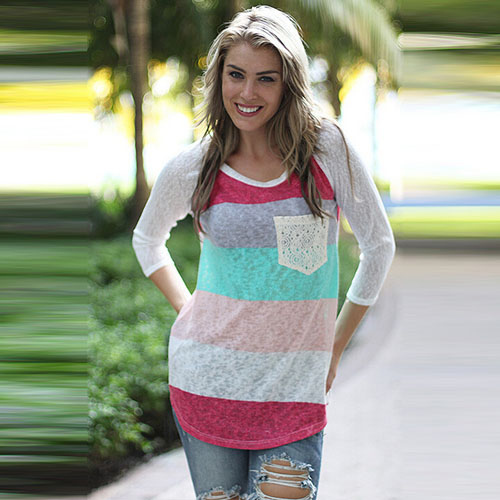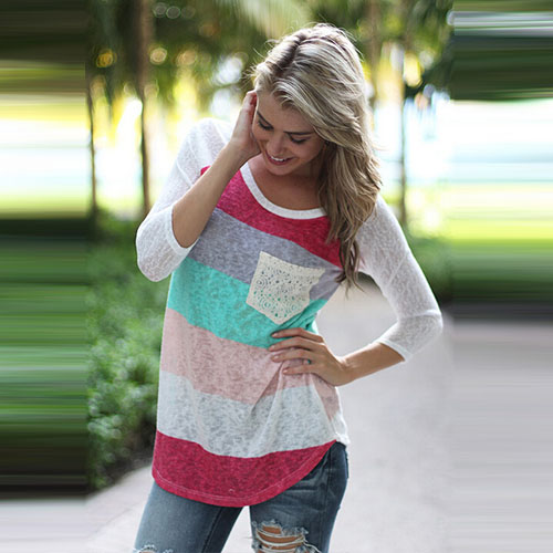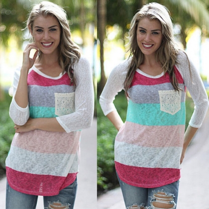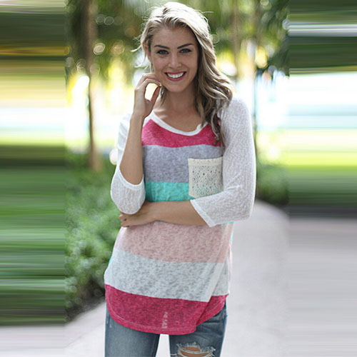 Colorful striped style,with long sleeve,round neck and chest patch pocket design. You can pair it with