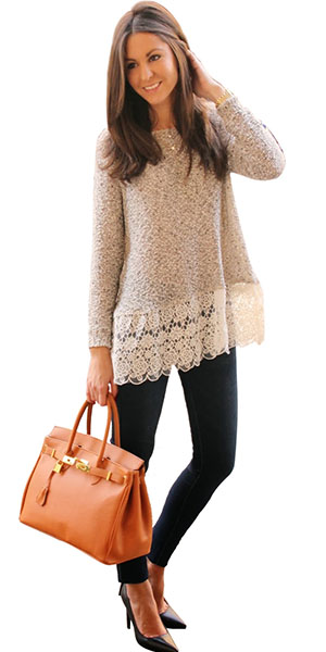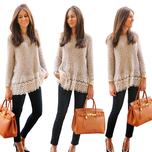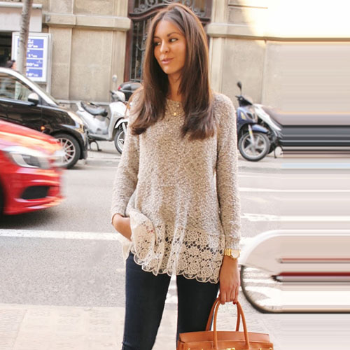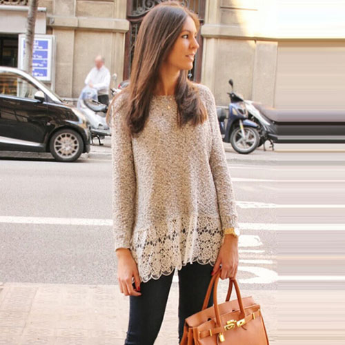 the best part? Its lace spliced hem design,of course. Pairing with your tight pants would be perfect.
