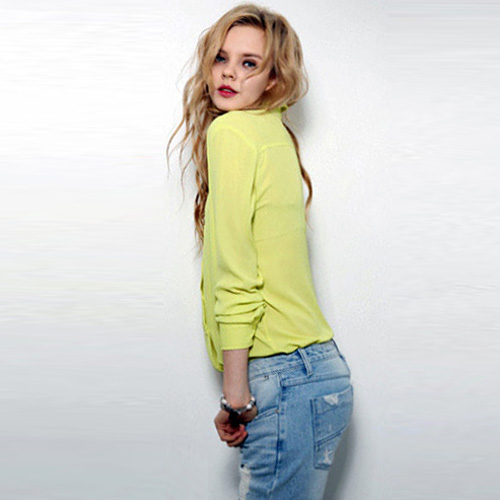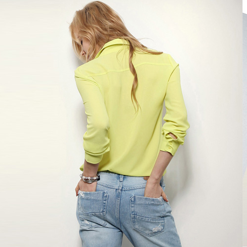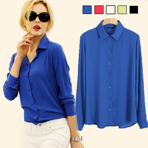 This chiffon shirt features solid color style,with long sleeve,a basic collar and front buttoned design. Pairing