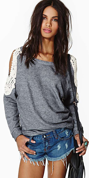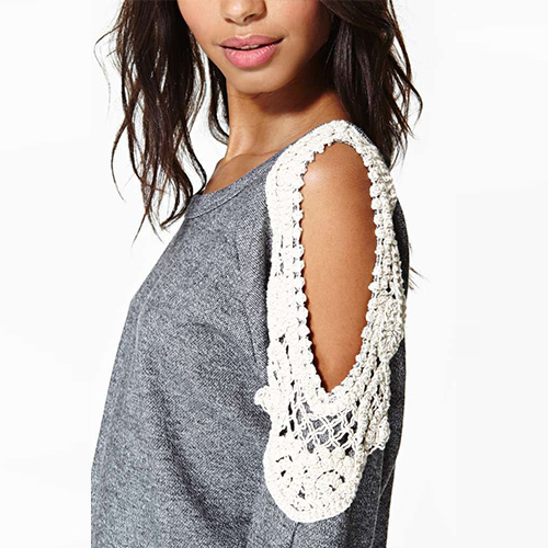 sleeves with off-shoulder and lace spliced design. Slip into this top for a comfortable wearing.