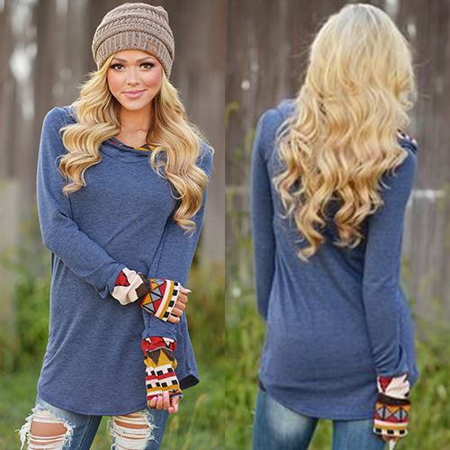 Printed spliced style,with long sleeve and hooded design. And its soft and