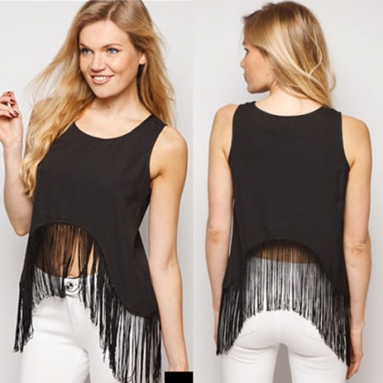 Solid color style,with sleeveless and round neck design. Irregular
