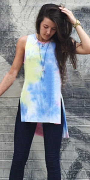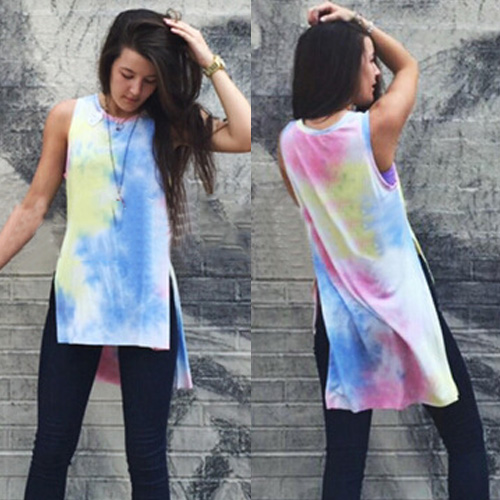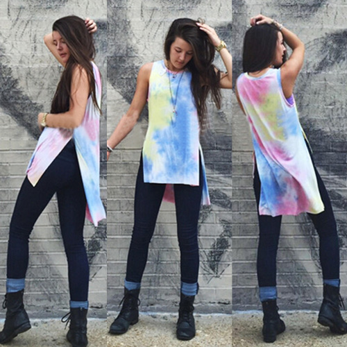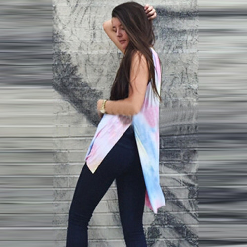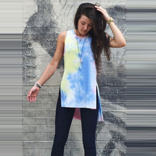 It features chic tie-dye printed,with slit high-low hemline design. Try to pair it with your tight pants.