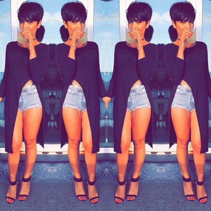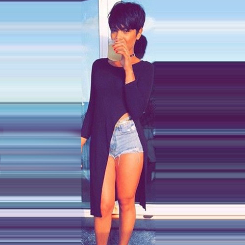 with round neck and high slit hem design. Soft cotton material gives you a comfortable wearing.