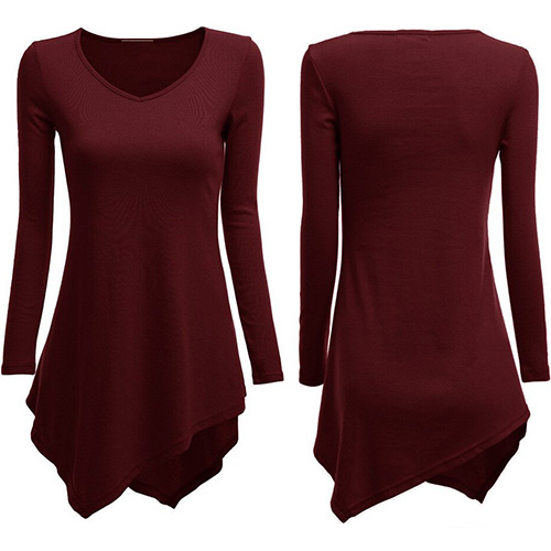 Fashion Solid Color Long Sleeve Irregular Hem T-shirt