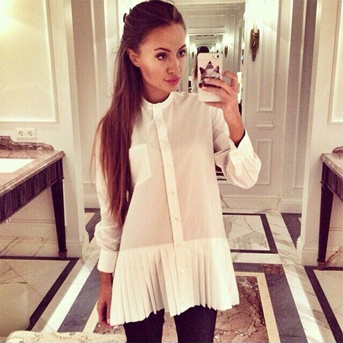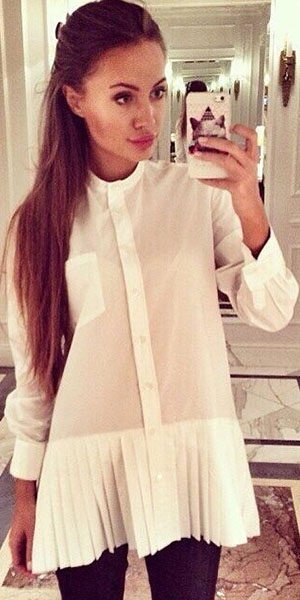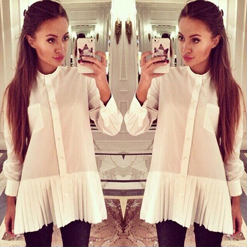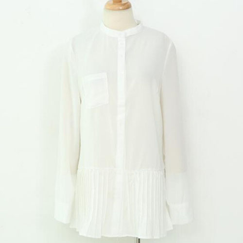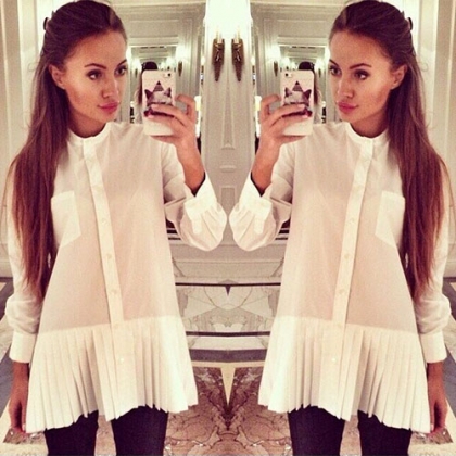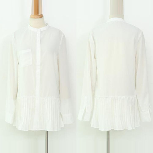 long sleeve shirt is your wardrobe essential. The most eye-catching design is its pleated hem. Try to