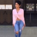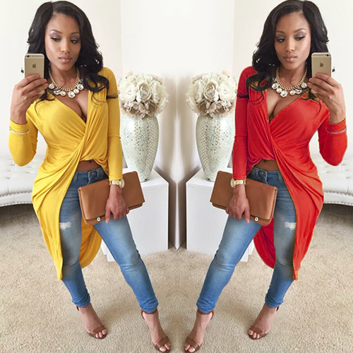 Bring your chic style to a new level with this tops. Solid color style,with long sleeve and v-neck design.