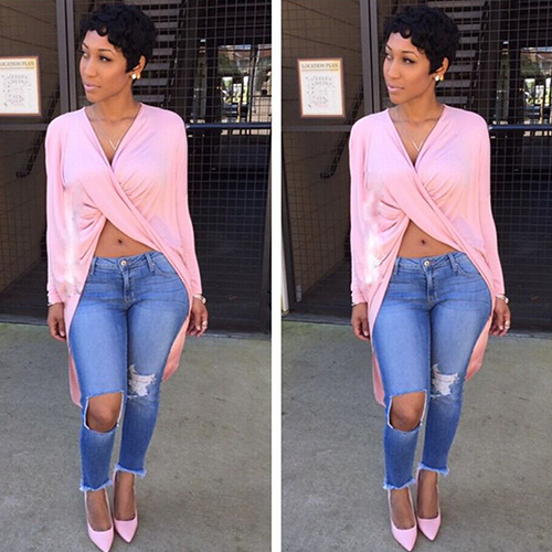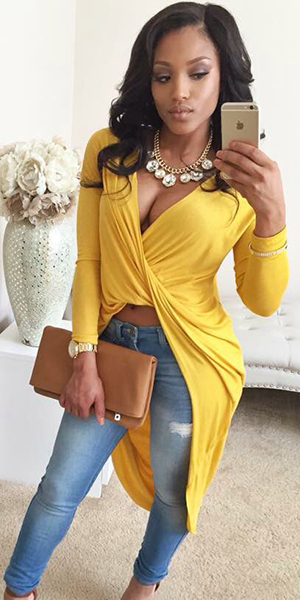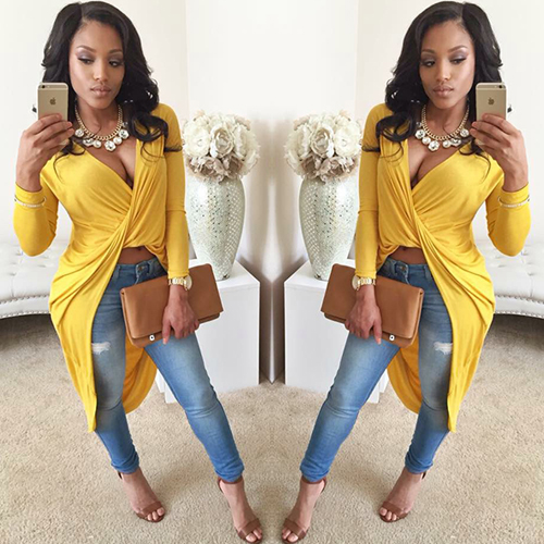 While its crossover and irregular hem design makes this piece so eye-catching. You can pair it with your