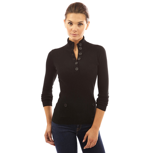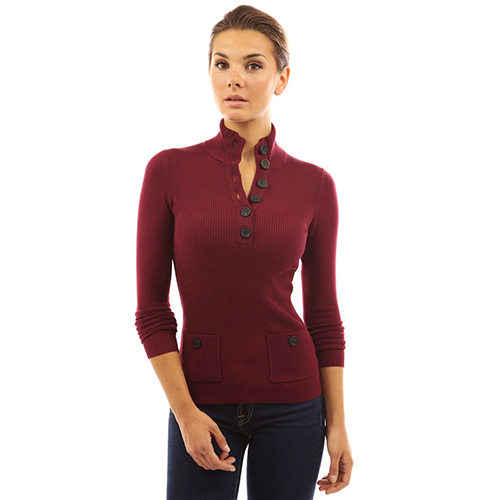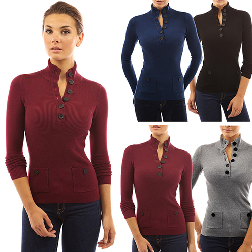 with long sleeve,v-neck and patch pockets design,classic and stylish. Decorative buttons design adds