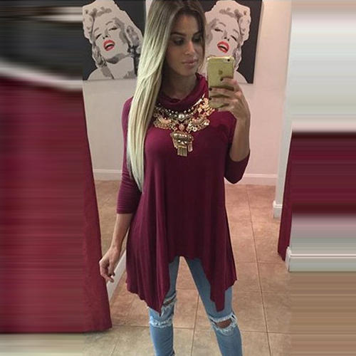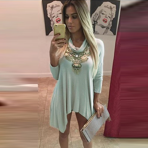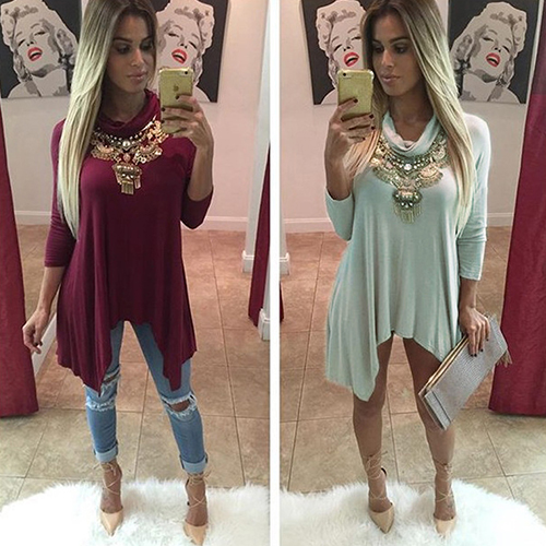 long sleeve design, simple but fashionable. The irregular hem design, it's very graceful. When