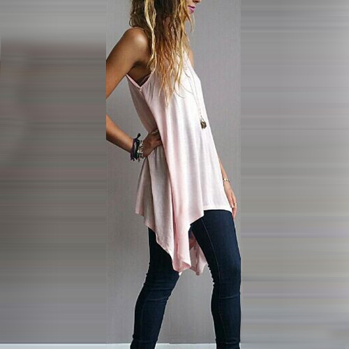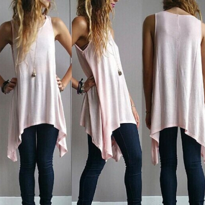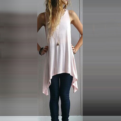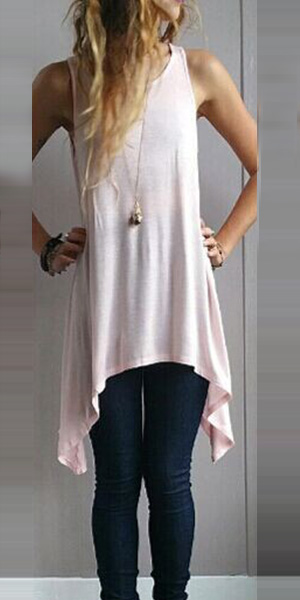 round neck and irregular hemline design. Wear it with tight pants for a casual and cool look.