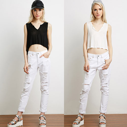 high-low hemline design,so chic and unique. Pairing it with your ripped high waist jeans
