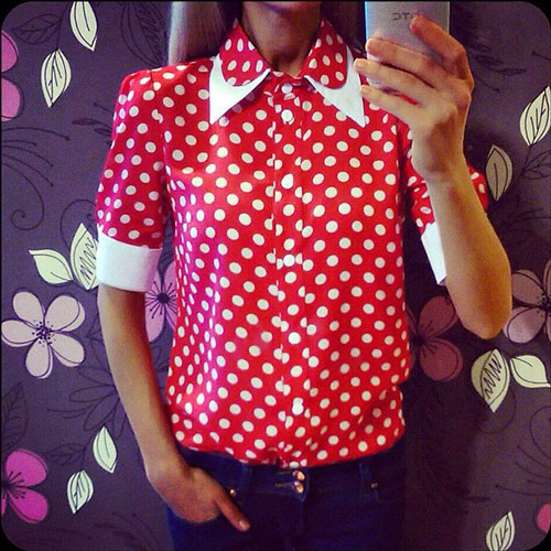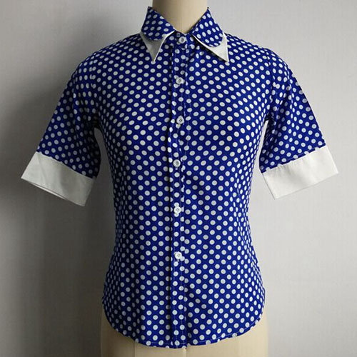 elegant and confident look! This shirt features dots pattern,with half sleeve and POLO collar design.