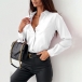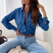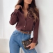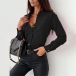 This shirt is a perfect choice for those office ladies. It can not only show your fashion sense,but also can show your slender figure. It is characterized by solid color style,long sleeve,POLO collar and single-breasted design,cuff with buttons and zipper design. You can try to pair it with your jeans.