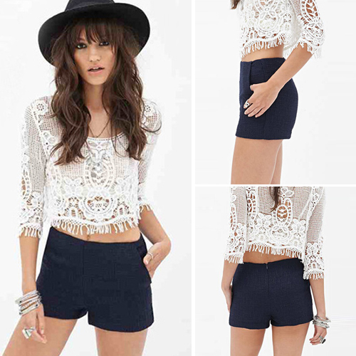 Hollow out style,with solid color,3/4 sleeve and round neck design,sexy and seductive.