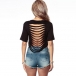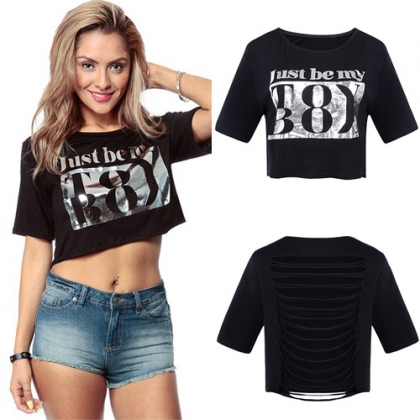 Such a chic and sexy t-shirt. Its gold-tone letters printed makes it so eye-catching. Backless style adds