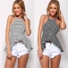 Striped style,with backless,high waist and irregular hemline design. Pairing it with your shorts