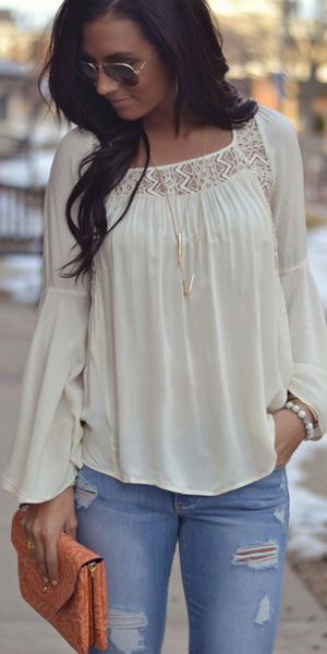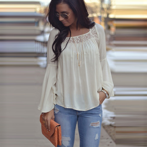 Combo of lace and chiffon,this long sleeve tops can keep you comfy all day.
