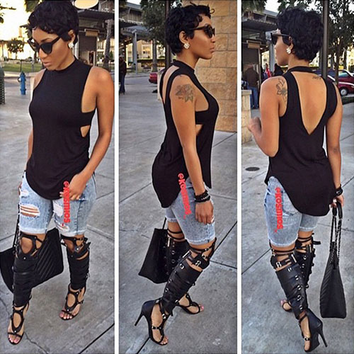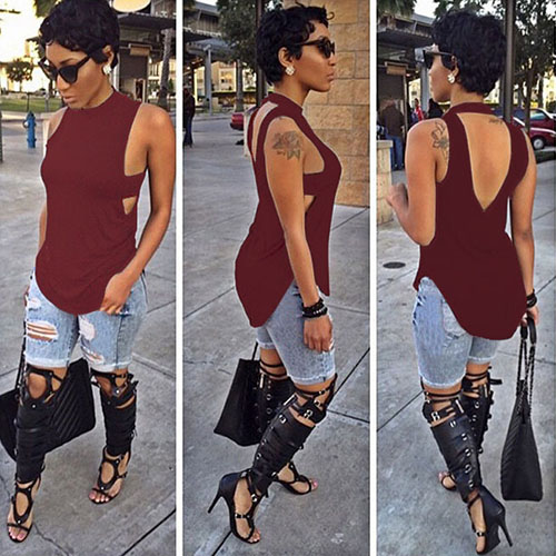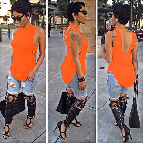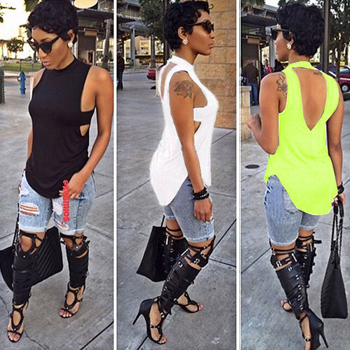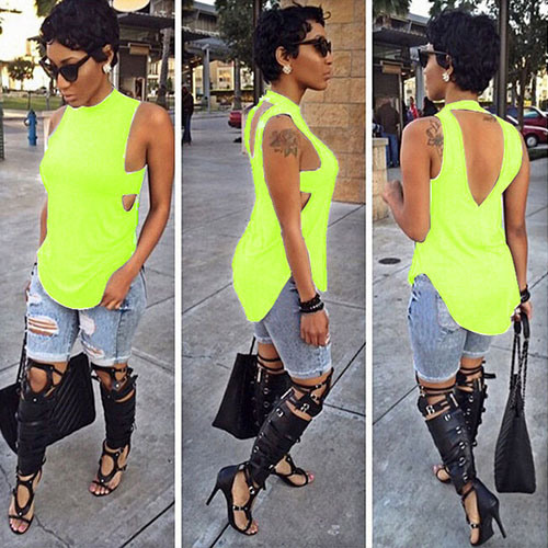 This sleeveless tops will gives a street-chic look. It features solid color style with delicate details,